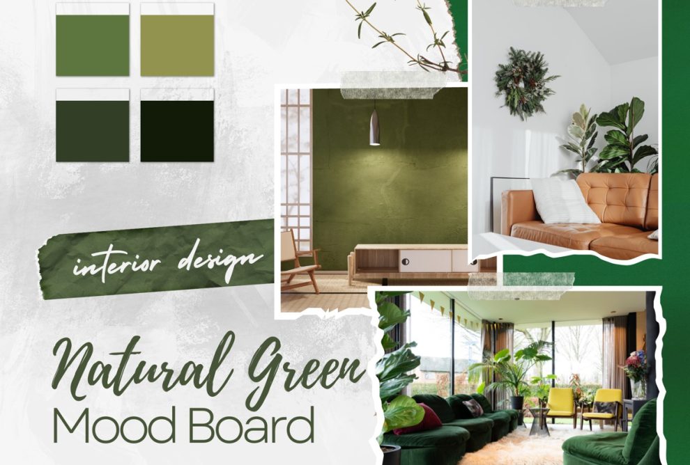 Meglévő és/vagy új bútorok, színek, alapanyagok, kiegészítő tárgyak materialboard, moodboard vagy kollázs vagyis hangulati kép formájában…