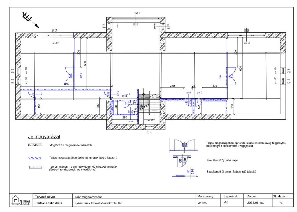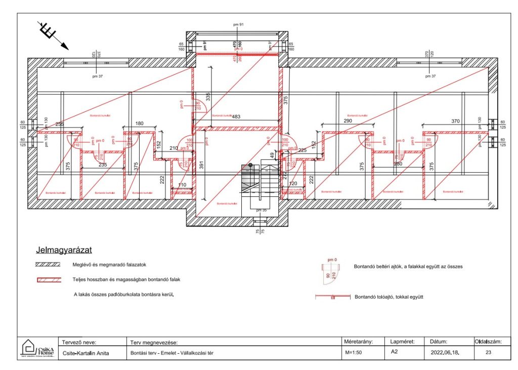 A fenti végleges alaprajzhoz hosszú út vezetett, melyet mindenképpen olyan műszaki tervek (is), mint Bontási terv és Építési terv, előztek meg.
